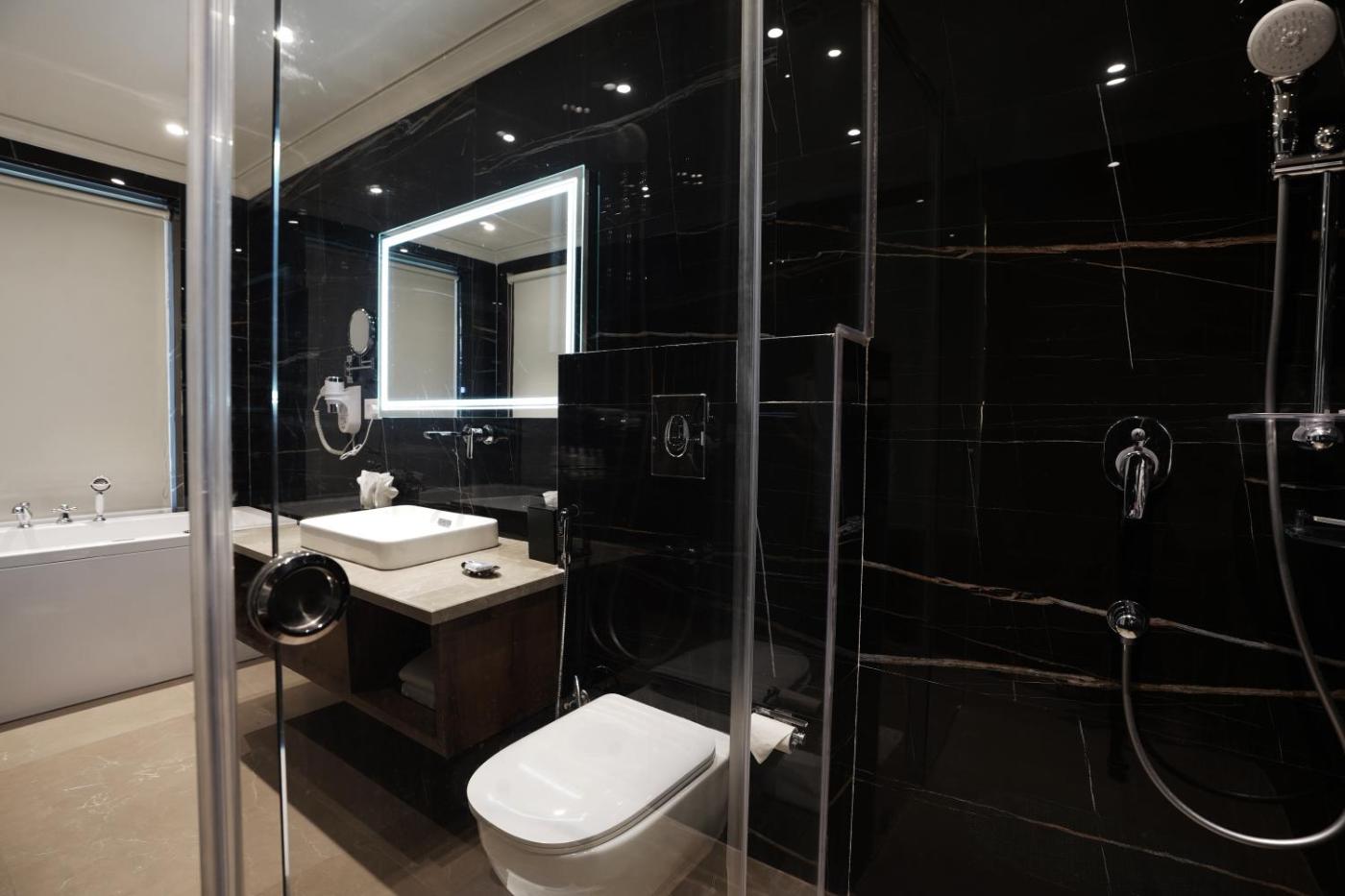 Premium Suite. Featuring a private entrance, this spacious suite also is comprised of 1 bedroom, a seating area and 1 bathroom with a walk-in shower and a bath. This suite features air conditioning, soundproof walls, flat-screen TV, as well as chocolate for guests. The unit offers 1 bed. ;